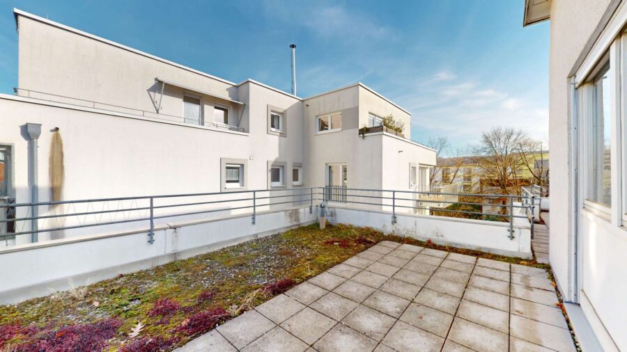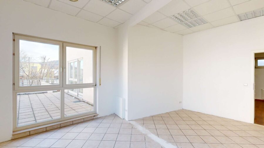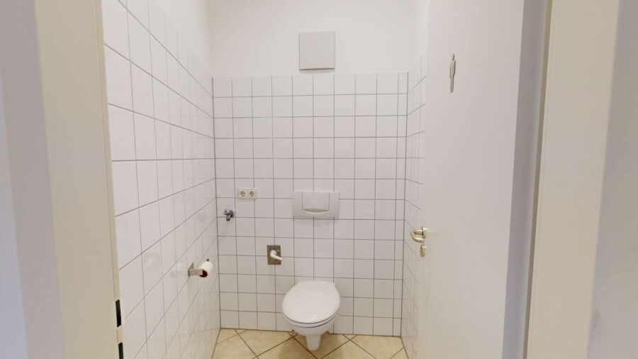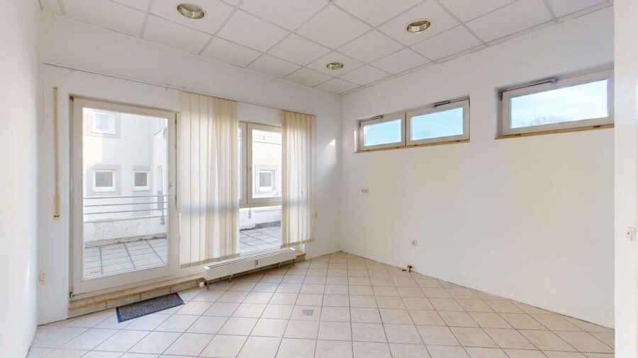 Empfangsbereich, 3 Büros / Praxisräume (davon einer mit Dusche), getrennte Damen- und Herren-WCs mit Vorraum, 2 Terrassenbereiche.