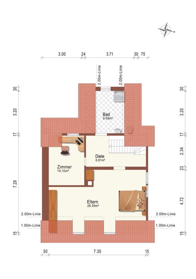 - Dachgeschoss (Wohnfläche – ca. 54 m²)