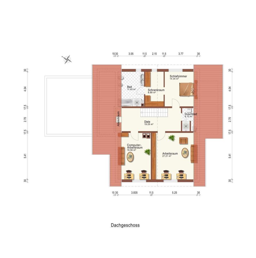 ✔ Schlafzimmer im DG mit eigenem Bad und dazwischen liegendem Schrankraum