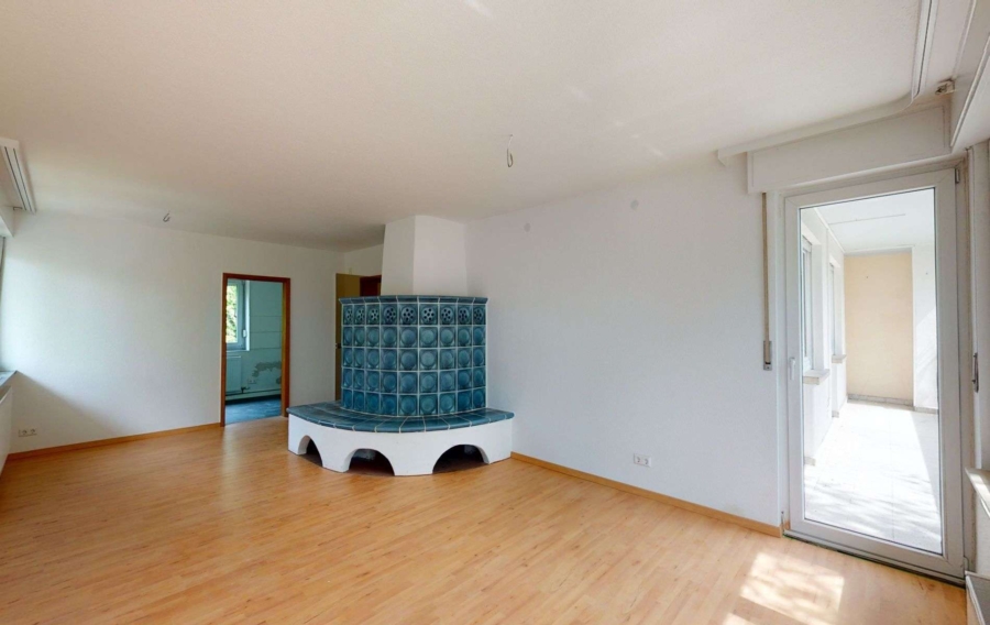 ✔️ Großer Wohn-/Essbereich (ca. 30 m²), stillgelegter Öl-Kaminofen