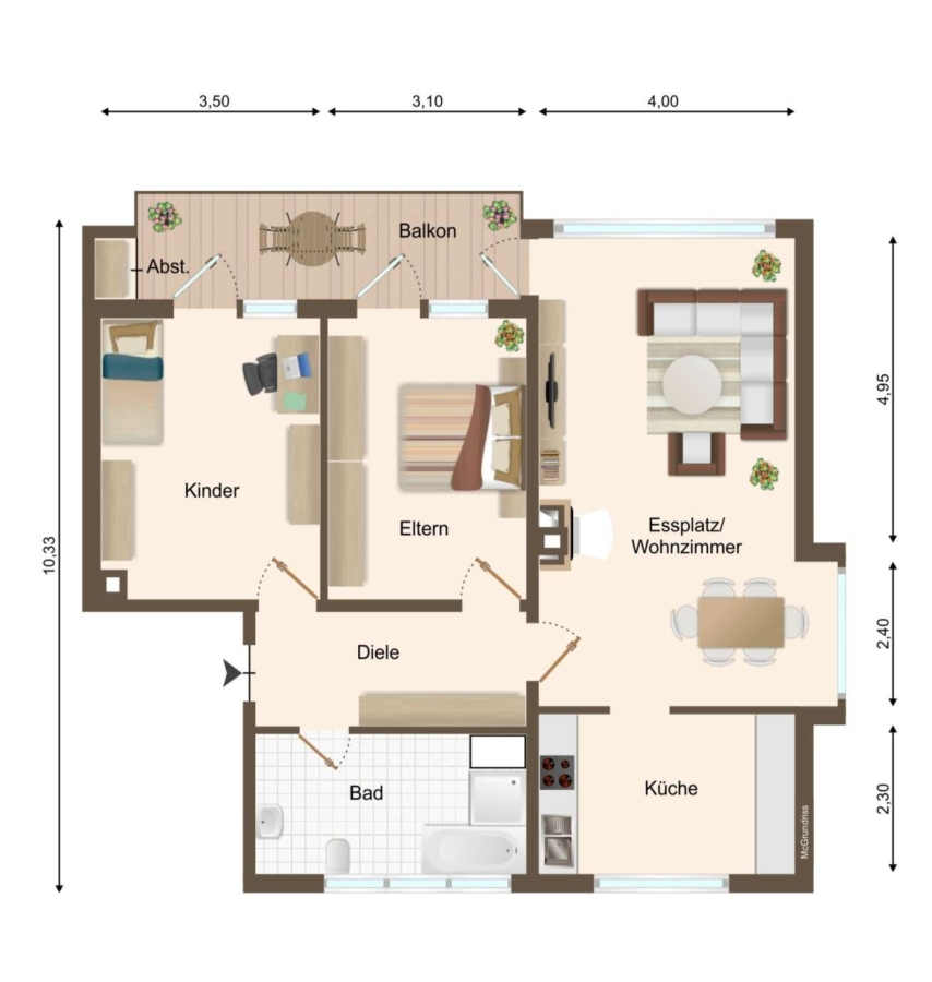 ✔️ Balkon zur Stirnseite