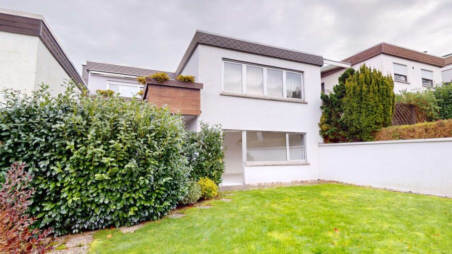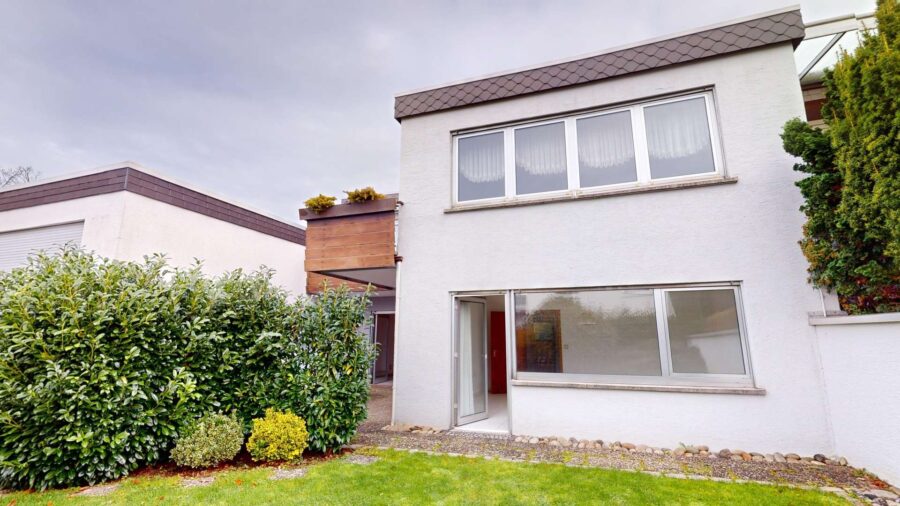Das massiv gebaute Reihenmittelhaus wurde 1975 als Flachdachbungalow errichtet und bietet mit einer Wohnfläche von rund 152 m² über zwei Etagen reichlich Raum zum Leben und Entfalten. Die Hanglage wurde architektonisch ideal genutzt – mit lichtdurchflutetem Wohnbereich oben und direktem Gartenzugang unten.