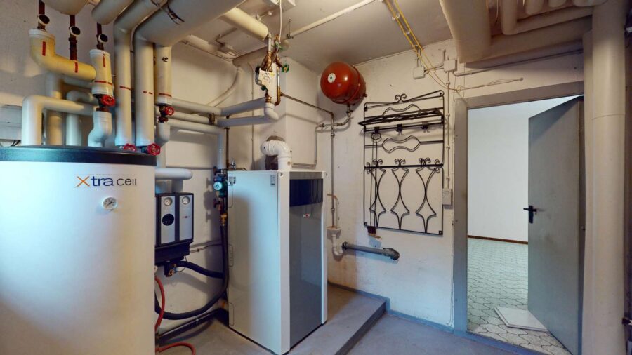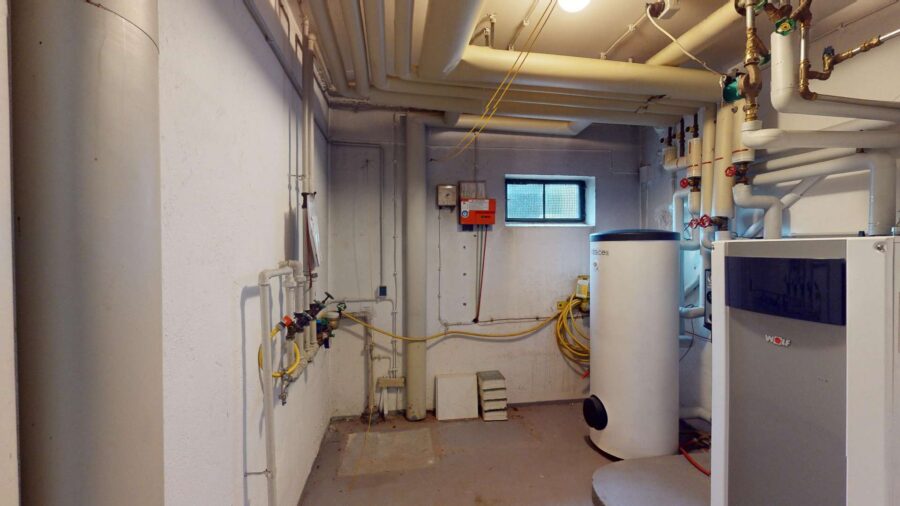 Abgerundet wird das Untergeschoss durch ein großes Tageslichtbad mit Wanne, Dusche, Doppelwaschbecken und WC sowie den Heizungsraum mit Öl-Zentralheizung (Bj. 2009).