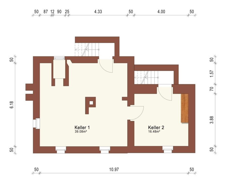 Keller: Gebäude 1 voll unterkellert sowie Gebäude 2 teilunterkellert