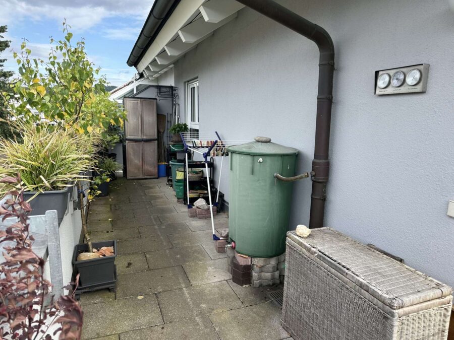 ✔ Gartenfeeling: Bepflanzung mit Blumenkästen, Topfpflanzen, Regentonne etc.