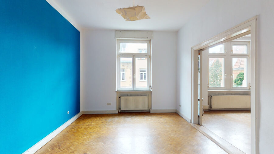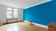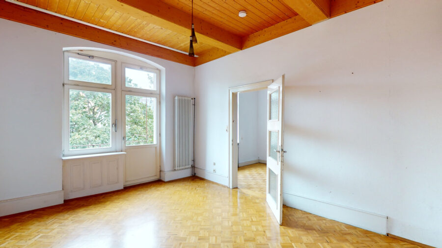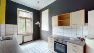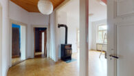 Highlight der Wohnung ist der großzügige Wohnbereich über zwei Räume, die mittels einer Flügeltür verbunden sind. Das Schlafzimmer mit Balkonzugang hat rückseitig einen Zugang in den ehemaligen Abstellraum, der als begehbarer Kleiderschrank ausgebaut worden. Und die Wohndiele mit gemütlichem Holzofen bietet viel Platz und verschiedene Nutzungsmöglichkeiten. Abgerundet wird das Angebot durch die Küche, eine Abstellkammer (war früher WC) und das Badezimmer mit Badewanne und WC.