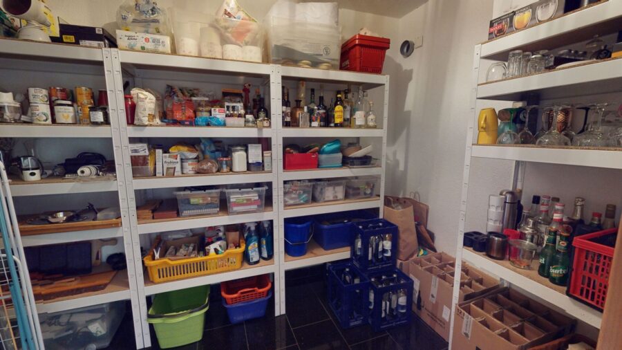 - Großer Hauswirtschaftsraum mit WMA und Regalen