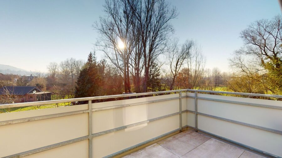Das lichtdurchflutete Apartment mit großflächigen Fenstern ist in hochwertigem Standard ausgebaut worden und verwöhnt Sie mit einem großzügigen Raumprogramm von rund 104 m² Wohnfläche. Highlight der Wohnung ist das klimatisierte Wohnzimmer mit Zugang zum Balkon in Süd-Ausrichtung und unverbautem Weitblick über den nahen Bühn-Park hinweg bis zu den Schwarzwaldausläufern. Hier können Sie vom Alltag entspannen und den Sonnenuntergang genießen.