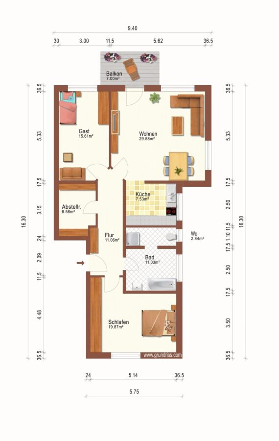 - 3,5mm starker Parkettboden in beiden Schlafzimmern