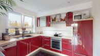 - Moderne Einbauküche mit Spülmaschine, Kühlschrank, Backofen und Herd