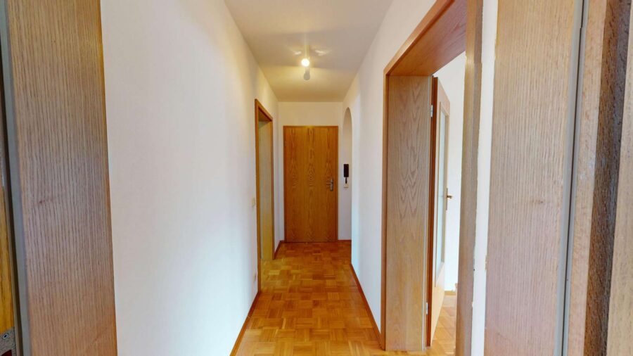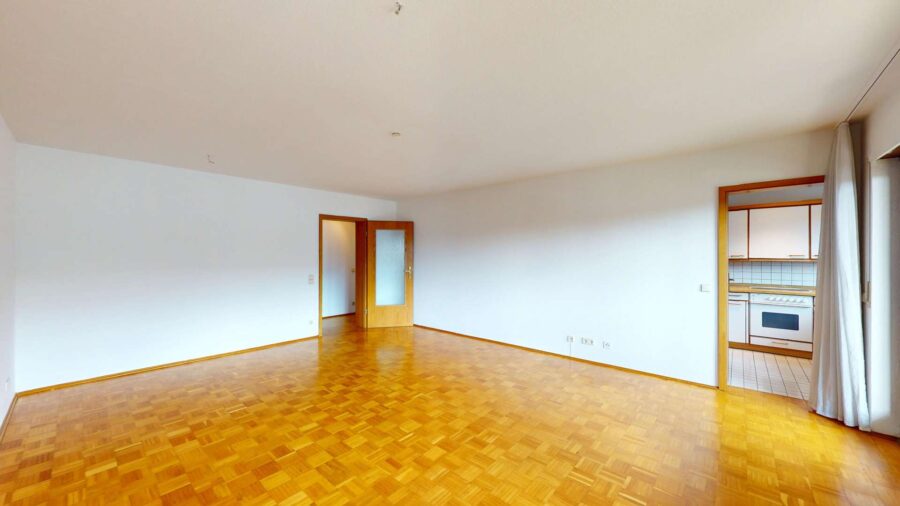 Die Wohnung überzeugt durch ihre durchdachte Aufteilung, zwei Balkone mit Blick ins Grüne, ein großzügiges Bad sowie eine gepflegte Ausstattung inklusive Einbauküche, Einbauschränken und echtem Mosaikparkett in allen Wohnräumen.