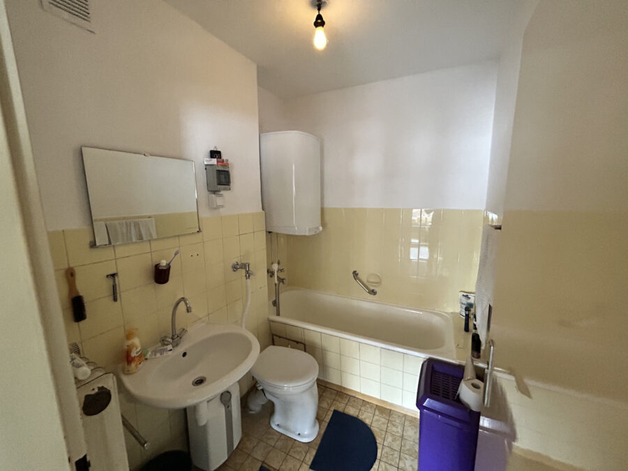 - Badezimmer mit Badewanne und WC