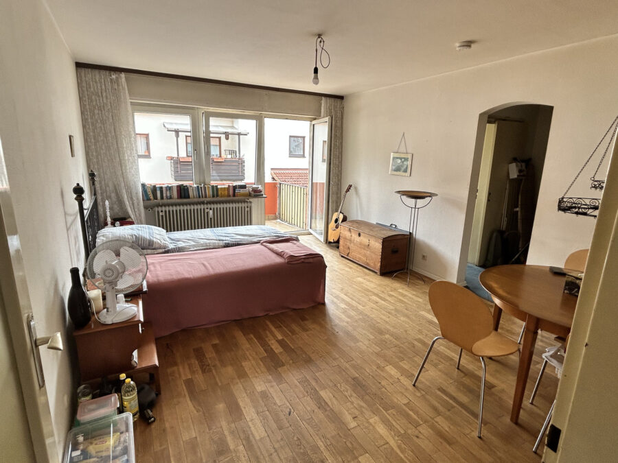 Die vermietete Eigentumswohnung verfügt über eine Wohnfläche von rund 39 m² und befindet sich im 1. OG eines 1964 erbauten Mehrfamilienhaus mit 20 Wohneinheiten. Der Wohn- / Schlafbereich mit Parkettboden und Balkonzugang bietet genügend Platz für einen Einpersonenhaushalt. Vom Balkon aus hat man einen schönen Ausblick auf den Ettlinger Robberg. Hinzu kommt die Küche, das Badezimmer mit Badewanne, ein Flurbereich mit Abstellmöglichkeit sowie ein Eingangsbereich mit Platz für eine Garderobe.
